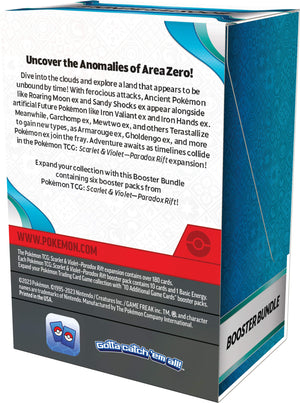 Dive into the clouds and explore a land that appears to be unbound by time! With ferocious attacks, Ancient Pokémon like Roaring Moon ex and Sandy Shocks ex appear alongside artificial Future Pokémon like Iron Valiant ex and Iron Hands ex. Meanwhile, Garchomp ex, Mewtwo ex, and others Terastallize to gain new types, as Armarouge ex, Gholdengo ex, and more Pokémon ex join the fray. Adventure awaits as timelines collide in the Pokémon TCG: Scarlet & Violet—Paradox Rift expansion!