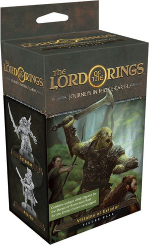 Enhance your games of The Lord of the Rings: Journeys in Middle-earth with new figures, trinkets, and titles! No matter whether you seek the Ember Crown or are investigating a rash of thefts across Eriador, you can bring the dastardly villains you face to life with the Villains of Eriador Figure Pack.