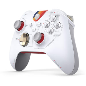 Examine how the Bronze, metallic D-pad complements the clean, technical design of the white top case. Remember your status as an intrepid voyager via the Constellation inspired colour mark around the Xbox button – a visual reminder to explore “For all, into the Starfield.”*