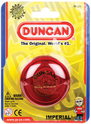 The Imperial® is the original, All-American classic. A timeless favorite, the Imperial has been the yo-yo of choice for many generations of beginning yo-yo players. The Imperial® features a narrow string gap, steel axle and durable plastic body in bold colors. It's great for learning the basics of yo-yoing!